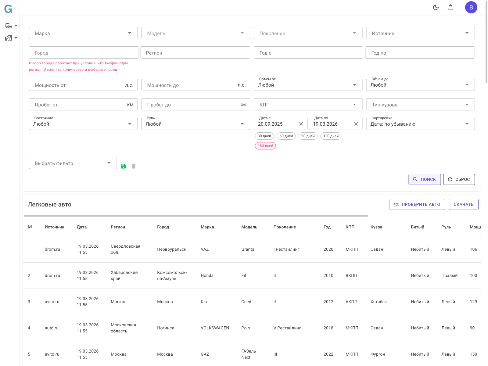 GRADEL объединяет архив объявлений с 2013 года, транспортную и недвижимостную аналитику, проверку ТС и подготовку отчетов в одном рабочем контуре.